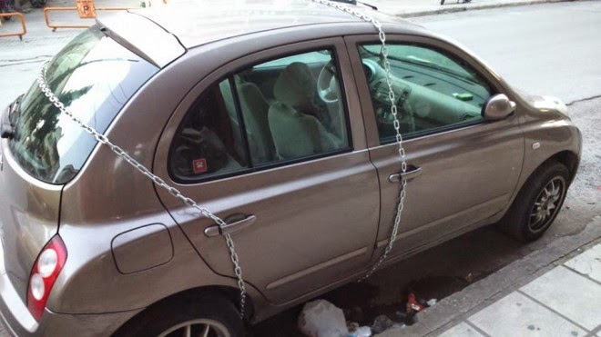 Ο ιδιοκτήτης του Ι.Χ στην προσπάθειά του να προστατεύσει το όχημά του από τα χέρια των επίδοξων κλεφτών, το αλυσόδεσε κυριολεκτικά από πάνω μέχρι κάτω!