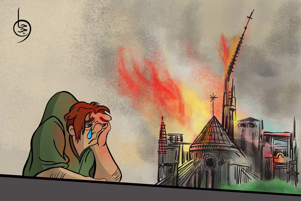 Τα σκίτσα με τον Κουασιμόδο να κρατάει αγκαλιά την αγαπημένη του «Κυρία» και να χύνει δάκρυα για εκείνη, κάνουν τον γύρο στα μέσα κοινωνικής δικτύωσης, αφού πολλοί ήταν οι καλλιτέχνες που εμπνευσμένοι από την καταστροφή, εξέφρασαν τη θλίψη τους μέσω αυτών.