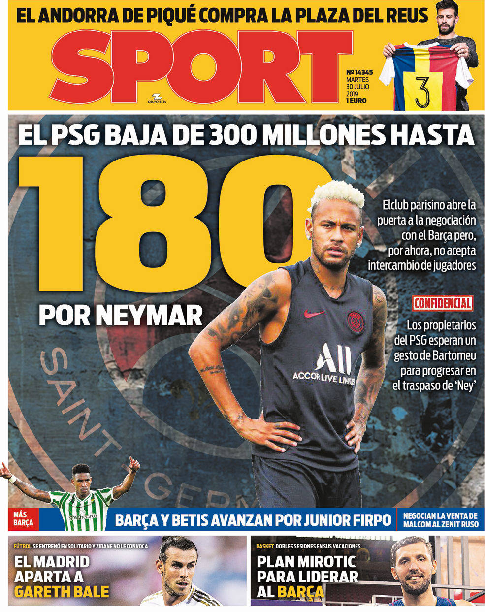 Σύμφωνα με την καταλανική Sport η Παρί θέλει μόνο ρευστό από την Μπαρτσελόνα για την πώληση του Νεϊμάρ και όχι έμψυχα ανταλλάγματα, ωστόσο έχει ρίξει νερό στο κρασί της αναφορικά με τις απαιτήσεις της.