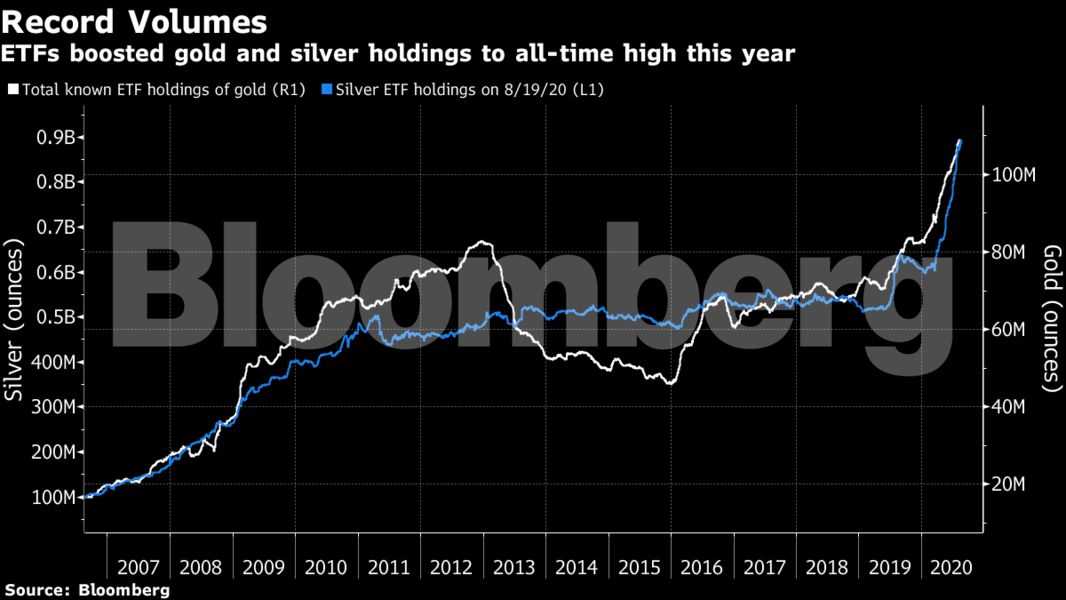 Η μεγάλης κλίμακας αγορές και τοποθετήσεις σε χρυσό επέφεραν ανακατανομές στην αγορά χρυσού και στη συγκέντρωση των αποθεμάτων. Σε αυτή την βάση πρωταθλητές αναδεικνύονται τα Χρηματιστηριακώς Διαπραγματεύσιμα Αμοιβαία Κεφάλαια (Exchange Traded Funds, ETFs) και ειδικότερα εκείνα τα οποία τη μεγαλύτερη έκθεσή τους την έχουν σε χρυσό και άργυρο. Στα εν λόγω funds συσσωρεύτηκαν περισσότερα από 50 δισ. δολάρια μέσα στο 2020, κατέχοντας πλέον τον περισσότερο σε αξία χρυσό από κάθε κεντρική τράπεζα, εξαιρουμένης της Ομοσπονδιακής Τράπεζας των ΗΠΑ.