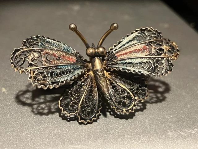 Ο αγοραστής μοιράστηκε την εμπειρία του στην πλατφόρμα του Reddit, στην ενότητα r/jewelry, ανεβάζοντας φωτογραφίες από το εντυπωσιακό εύρημα – μια καρφίτσα σε σχήμα πεταλούδας, που έδειχνε να είναι από ασήμι και πιθανόν αντίκα.